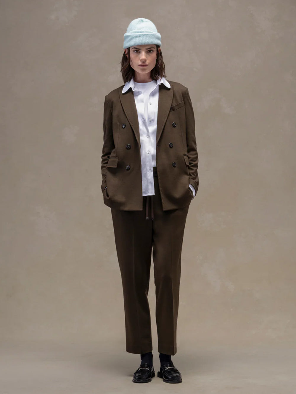 Holly Welt Pocket Trouser in Hint of Navy Stripe