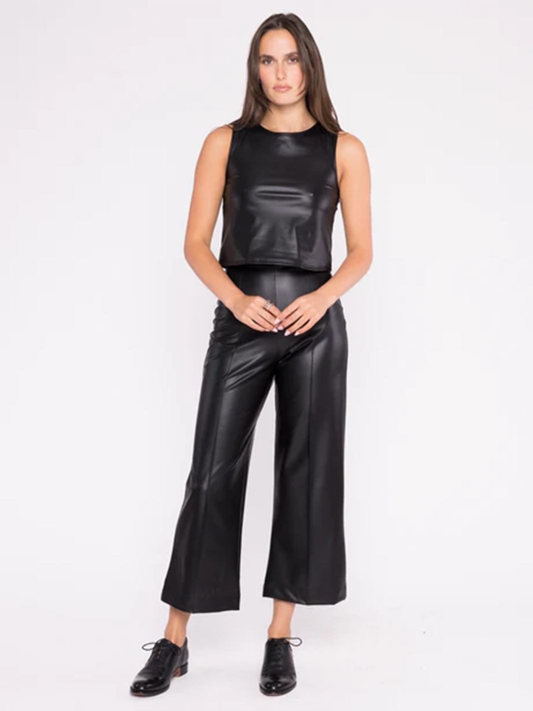 Kasey Wide-Leg Vegan Leather Pant in Black