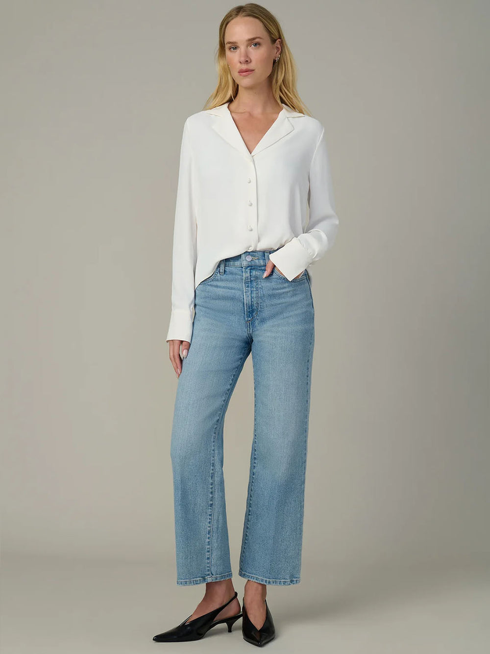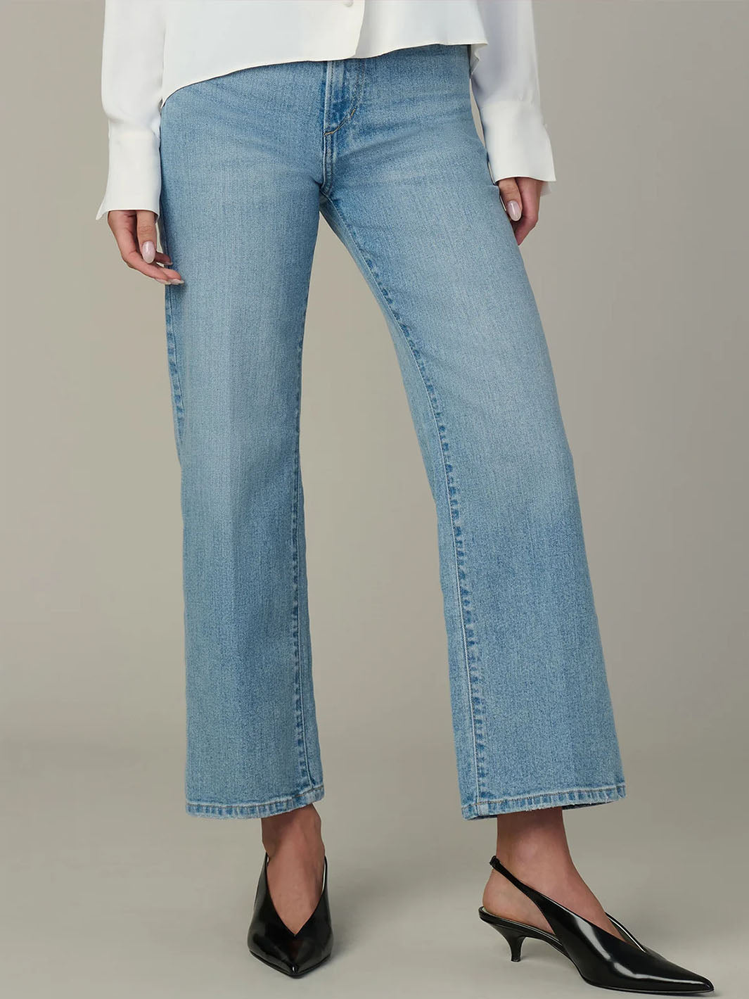 Wanda Cropped Wide-Leg Jean in Light Ecru
