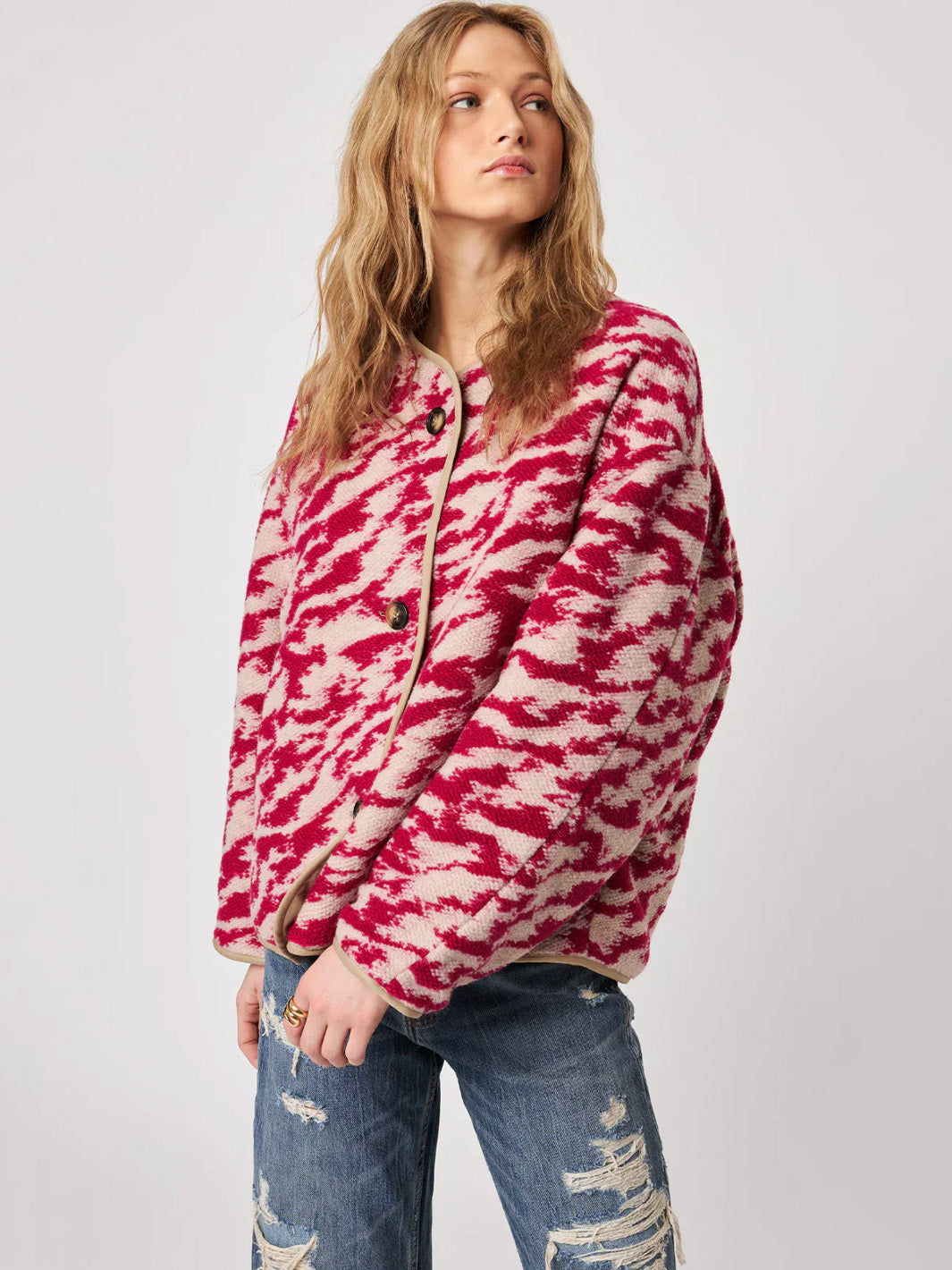 Quincy Reversible Sweater Jacket in Raspberry Swirl