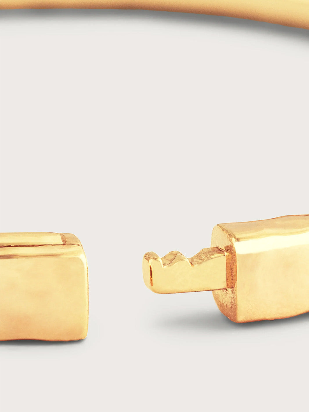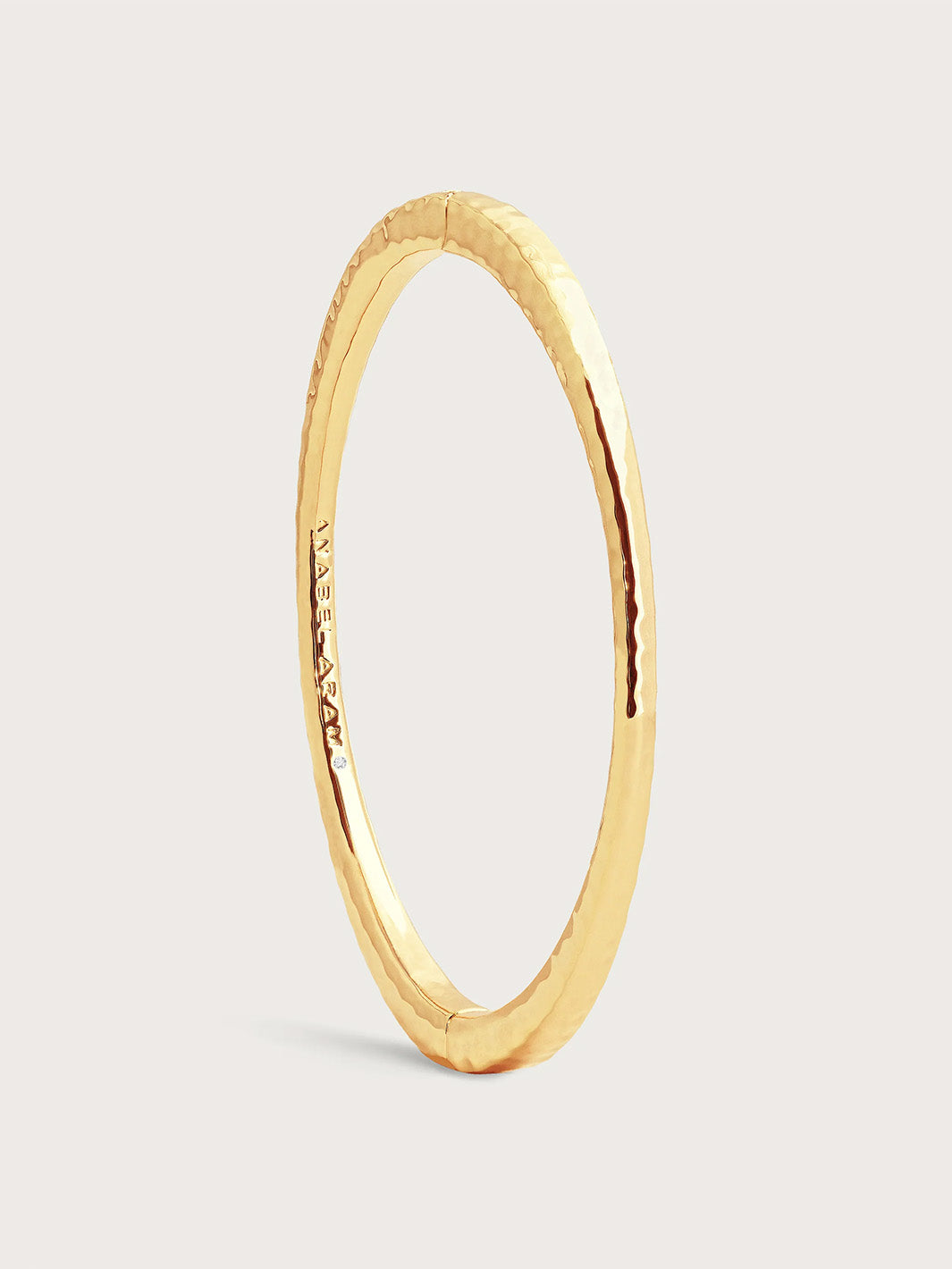 Effortlessly elevate your style with Anabel Aram's Farrier Thin Hinged Bangle in 18k gold plated brass. The timeless and classic design is perfect for the modern, minimalist fashionista. The hammered detailing adds a touch of chic to any outfit. Embrace the effortless elegance of the Farrier thin hinged bangle.