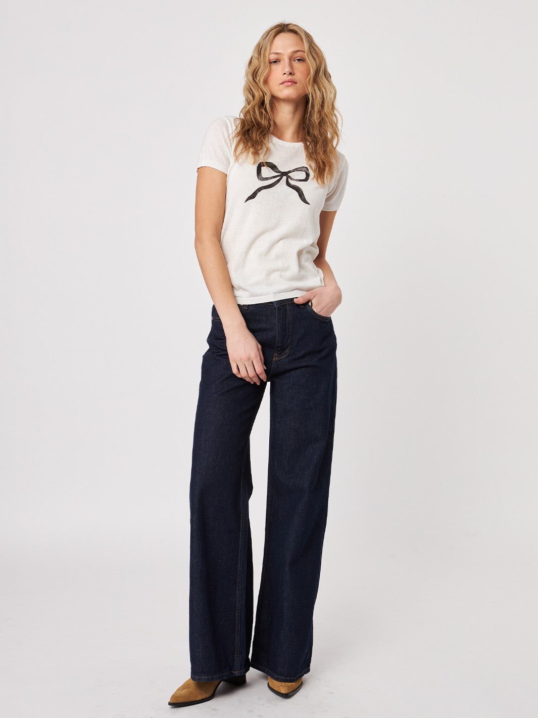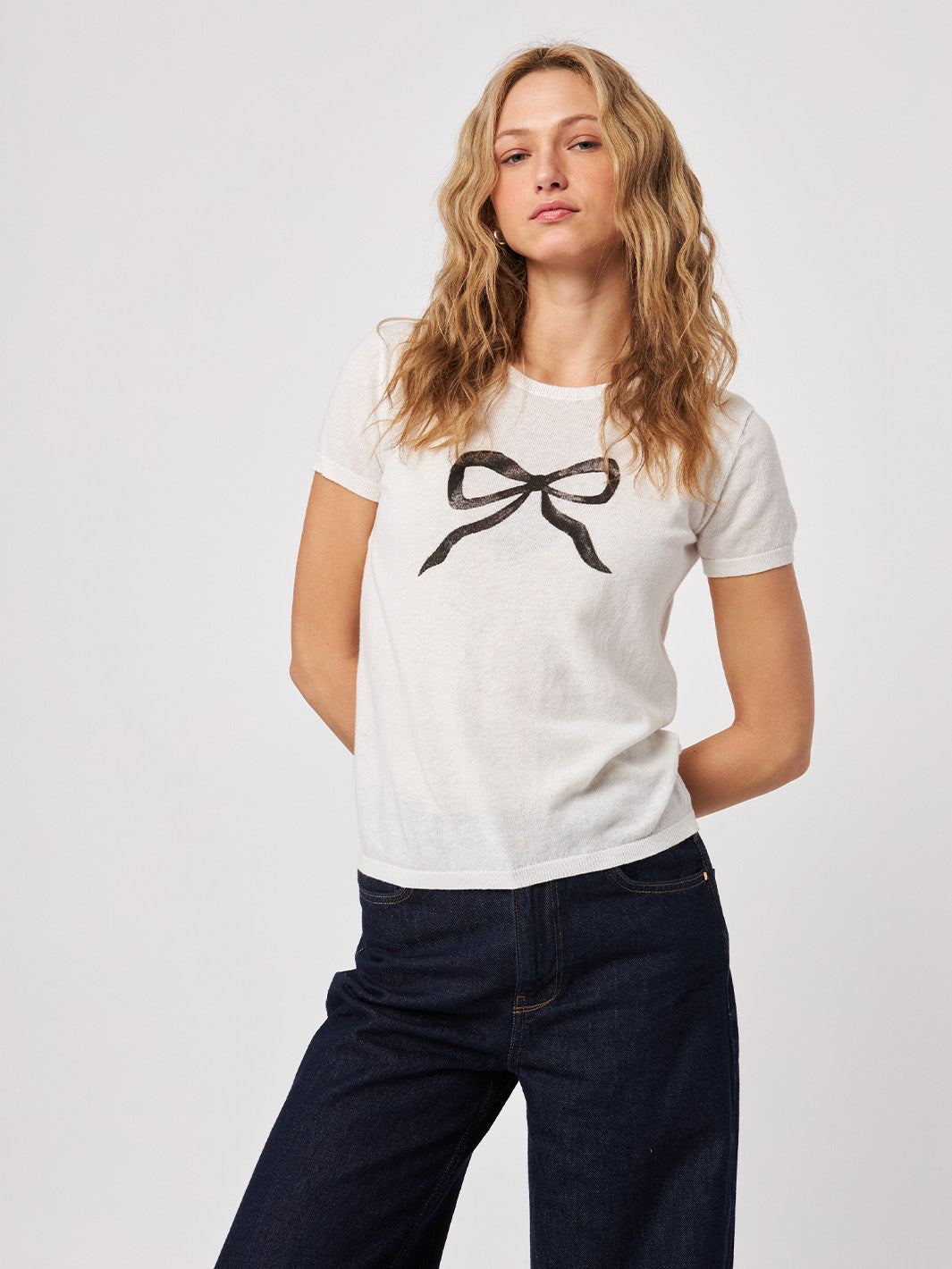 Knit, short-sleeve t shirt with a printed bow design: 100% Cotton