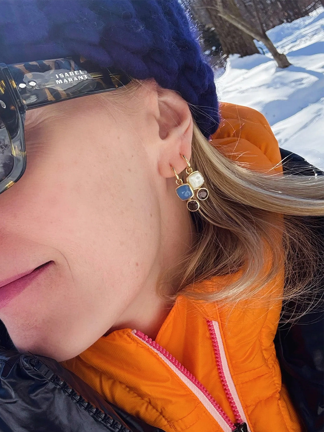 Add a playful pop of color to your look with our Color Block Huggie Hoop Charm Earrings. Featuring genuine semi-precious gemstones, these lightweight hoops are designed for all-day comfort and effortless style.