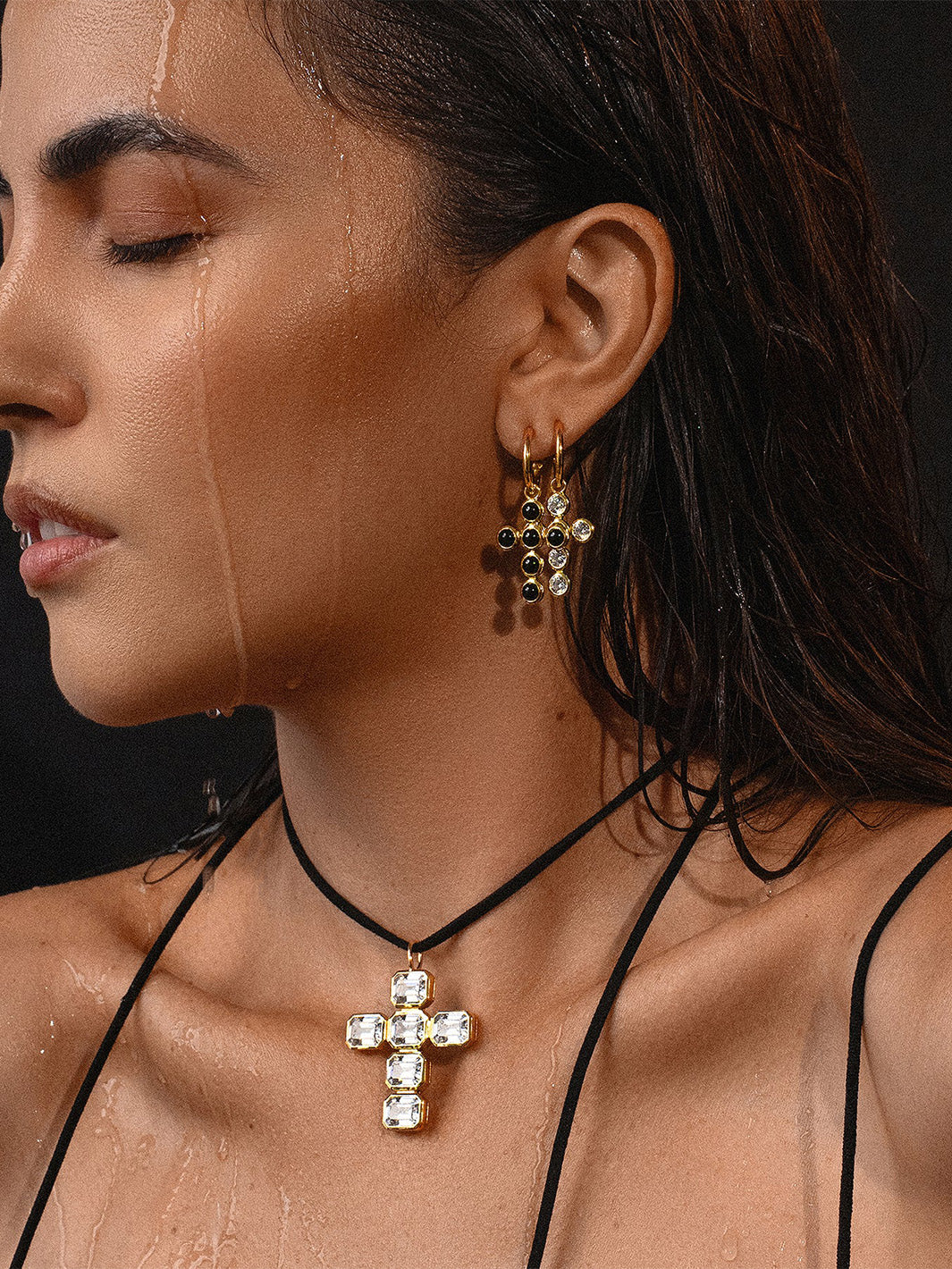 A modern take on a timeless symbol. Our Cross Charm Huggie Hoop earrings feature bezeled black onyx stones set in rich 14k gold-plated hoops.