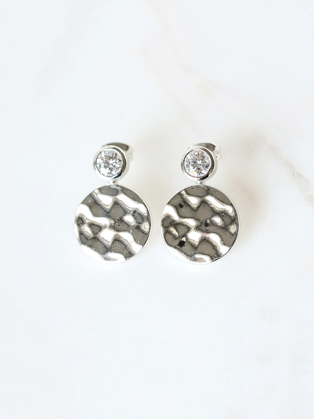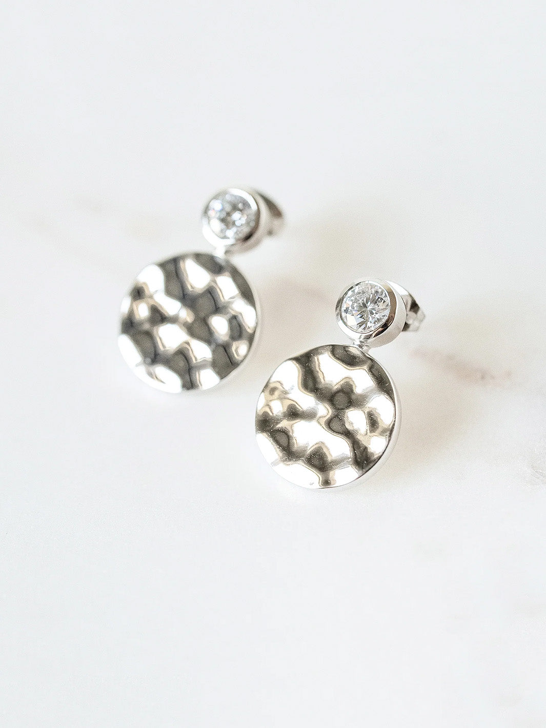 Hammered White Gold Floating Gem Stud Earrings