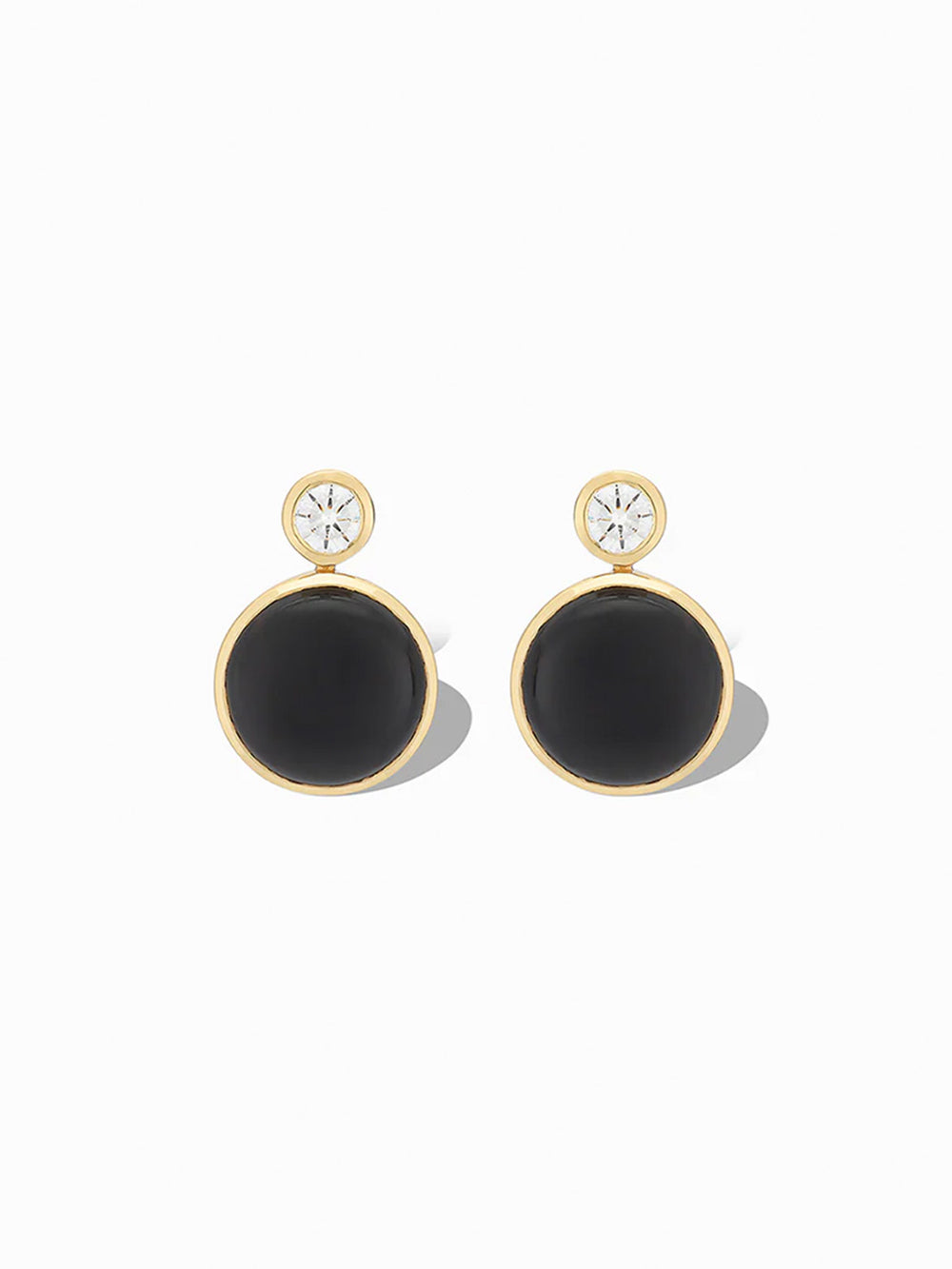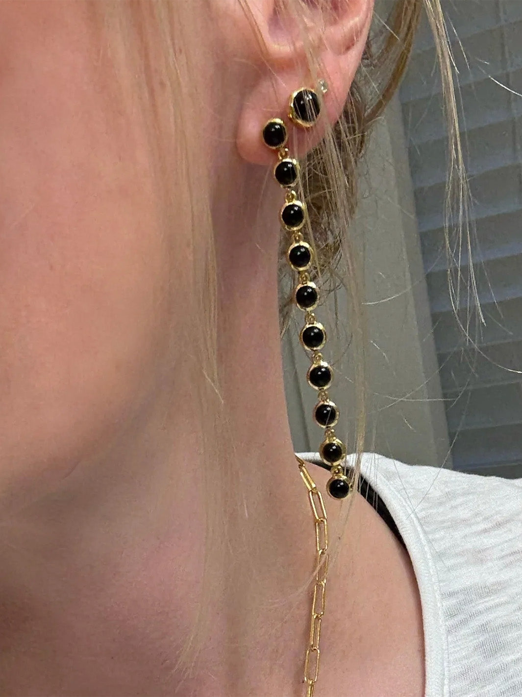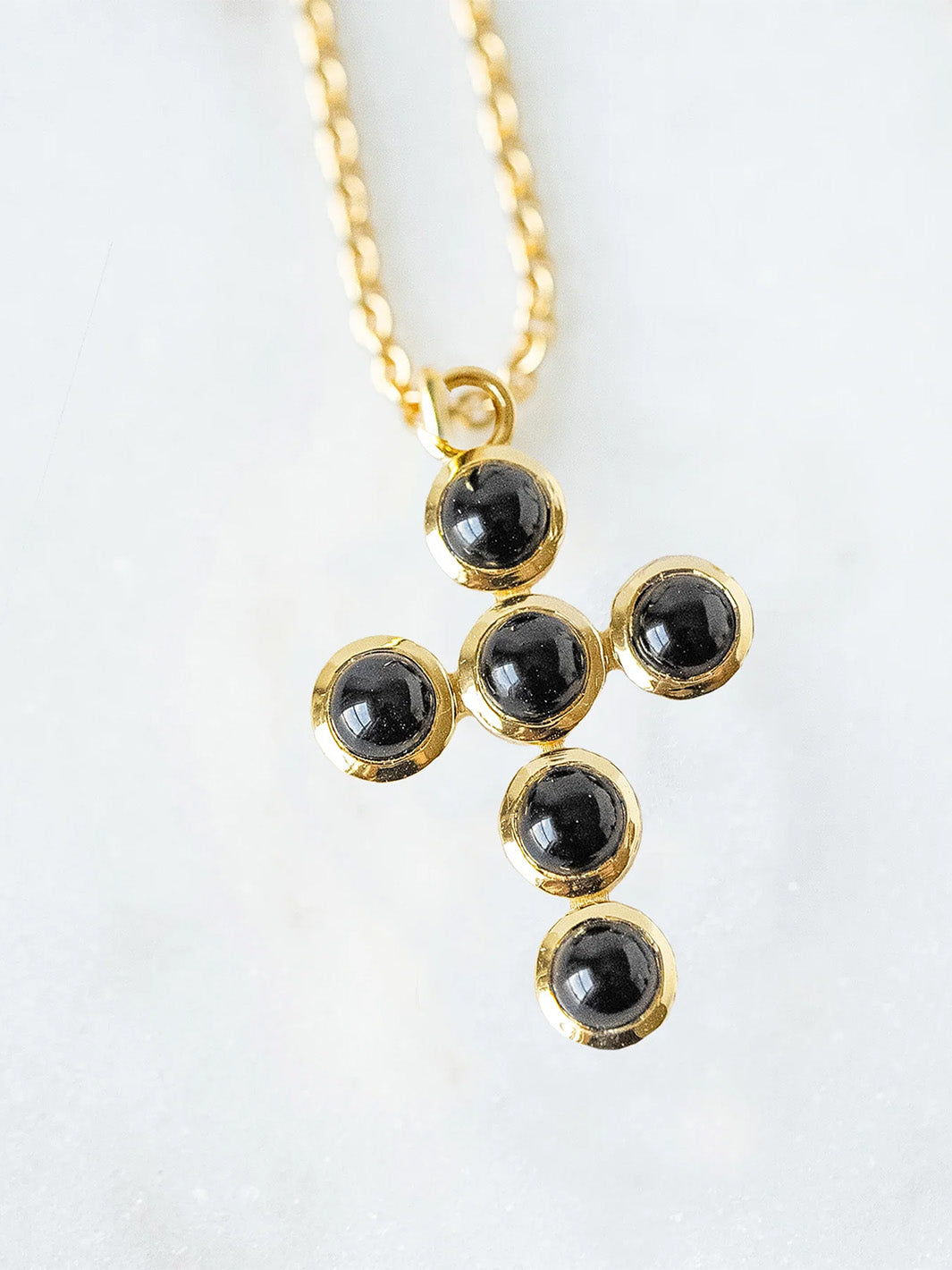 Cross Charm Huggie Hoop Earrings in Black Onyx
