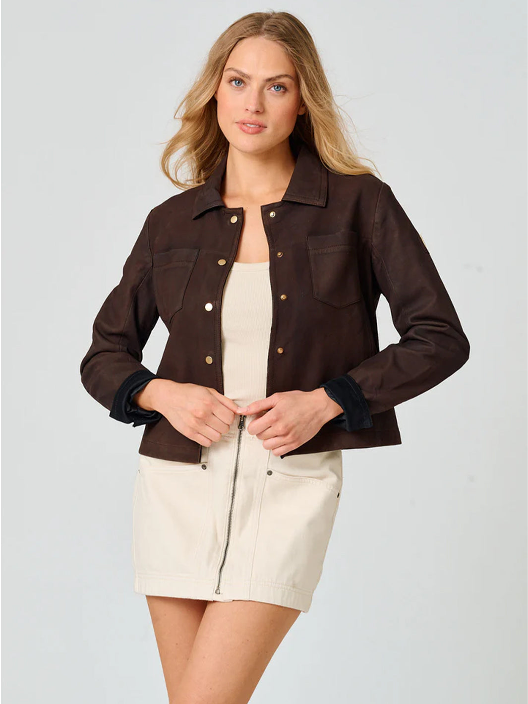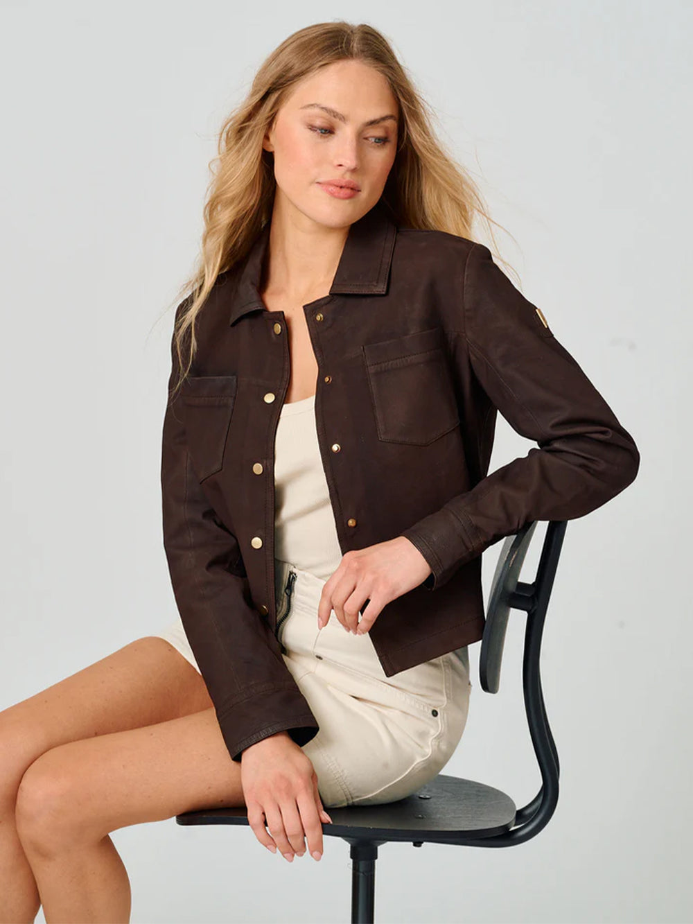 · Mixed textures + tailoring: Knitwear, shirting, tees, tanks, and tailored pieces are stacked together for depth and movement.