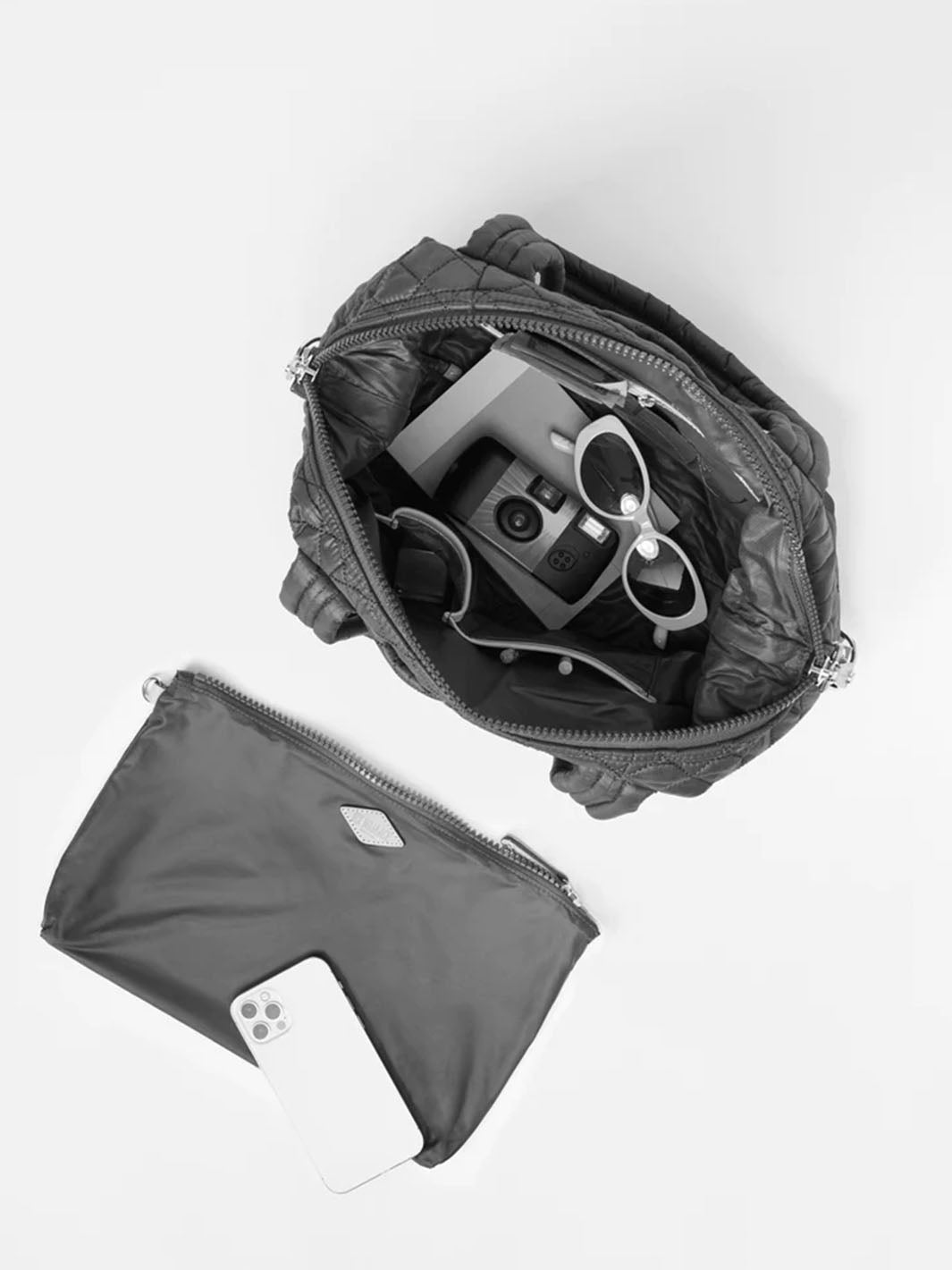 • Detachable, adjustable nylon crossbody strap
