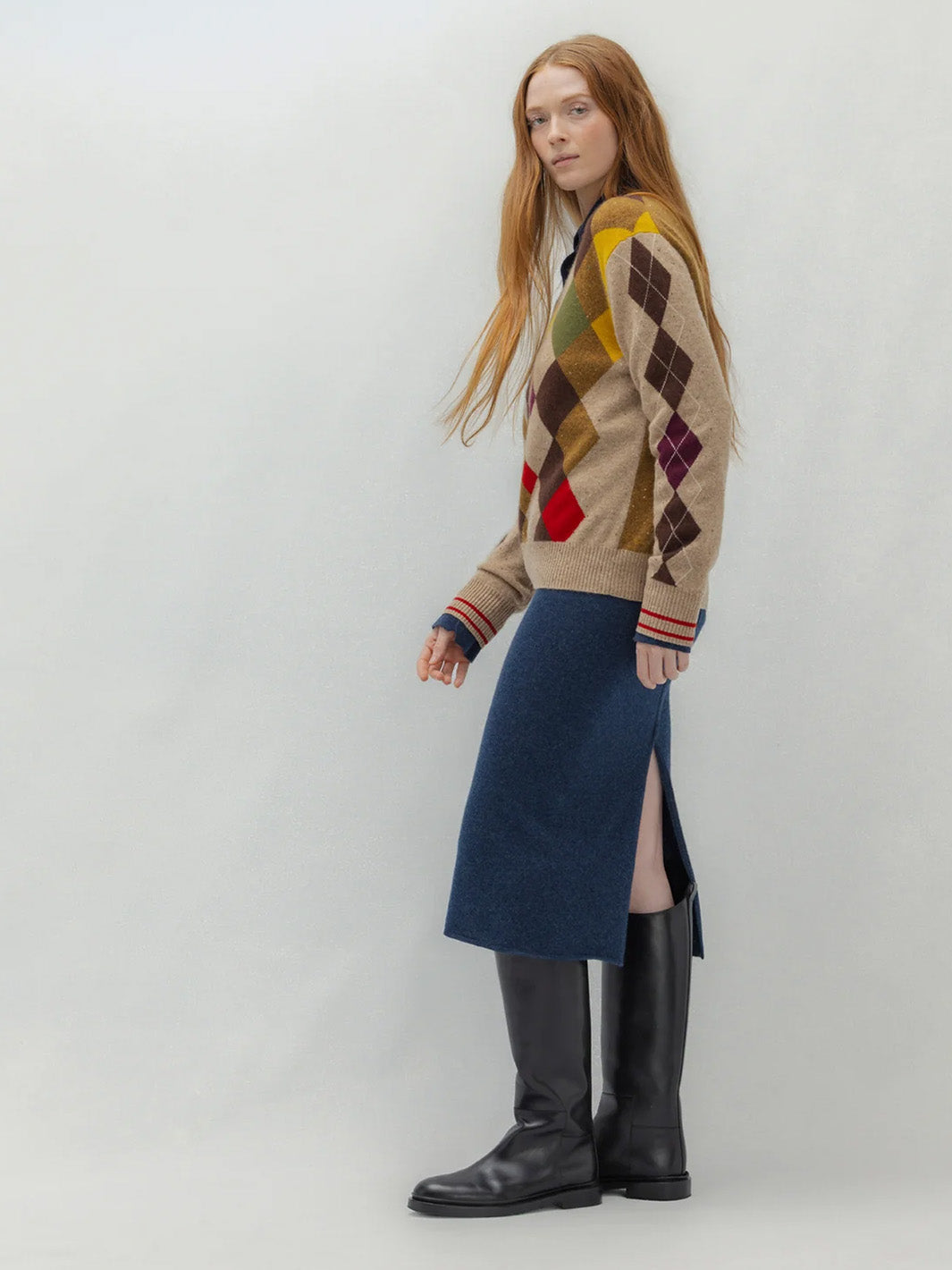 An offbeat classic with character to spare. Spun in a vintage-inspired diamond knit and finished with a relaxed V-neckline, it delivers a touch of quirky charm while keeping its timeless appeal.