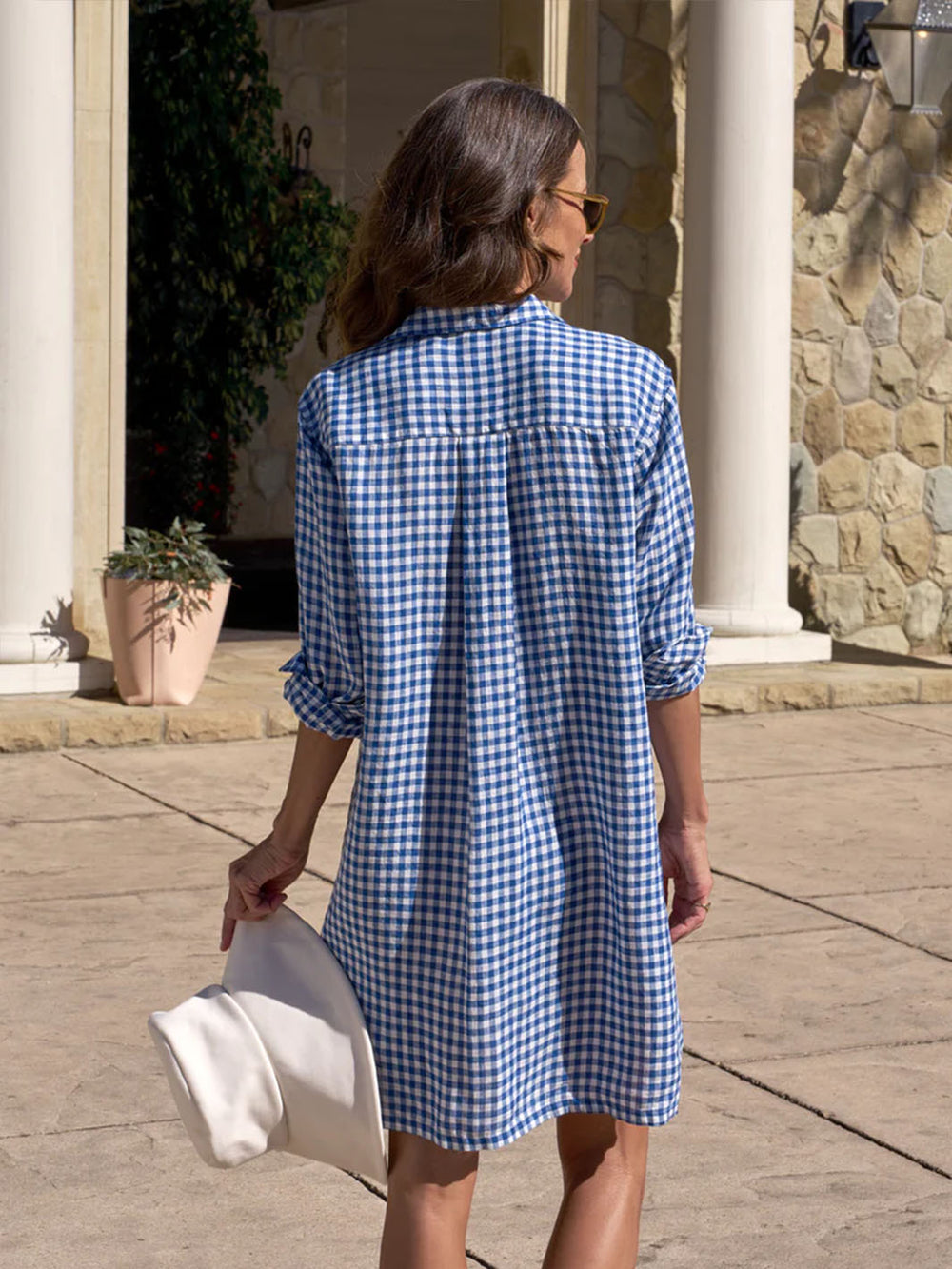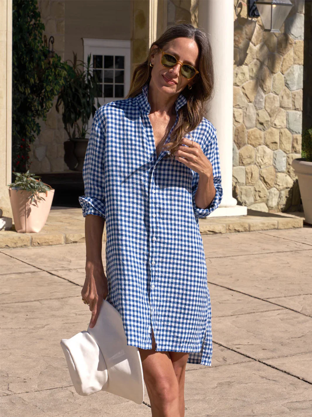 Eileen Relaxed Button-Up Shirt in Yellow with Blue Plaid