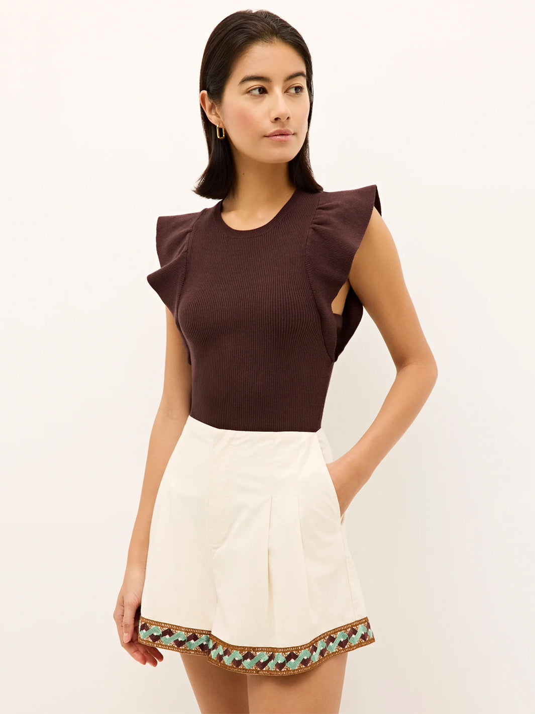 best-selling Rory top is one of those foundational pieces every great wardrobe needs. With a ribbed bodice and feminine ruffle sleeves, this figure-flattering style is designed to be tucked in.