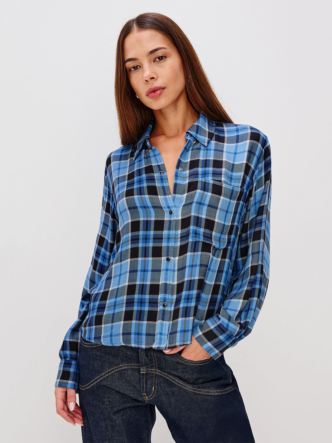 Eileen Relaxed Button Up Shirt in Light Blue Camel