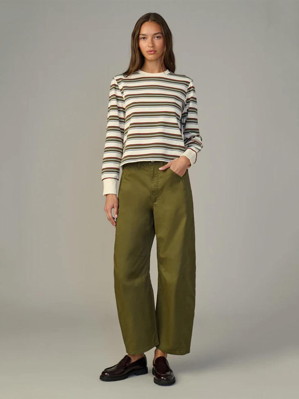 The Long Sleeve Easy Tee in Cherry Red Ecru Stripe