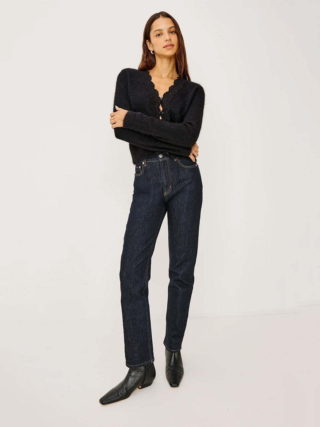 Elegance in every stitch. Knitted from a soft alpaca-wool blend, the Mer features a flattering V-neckline trimmed with delicate lace extending to the hem. With front button closures and long sleeves, this refined cardigan is one you'll reach for again and again.