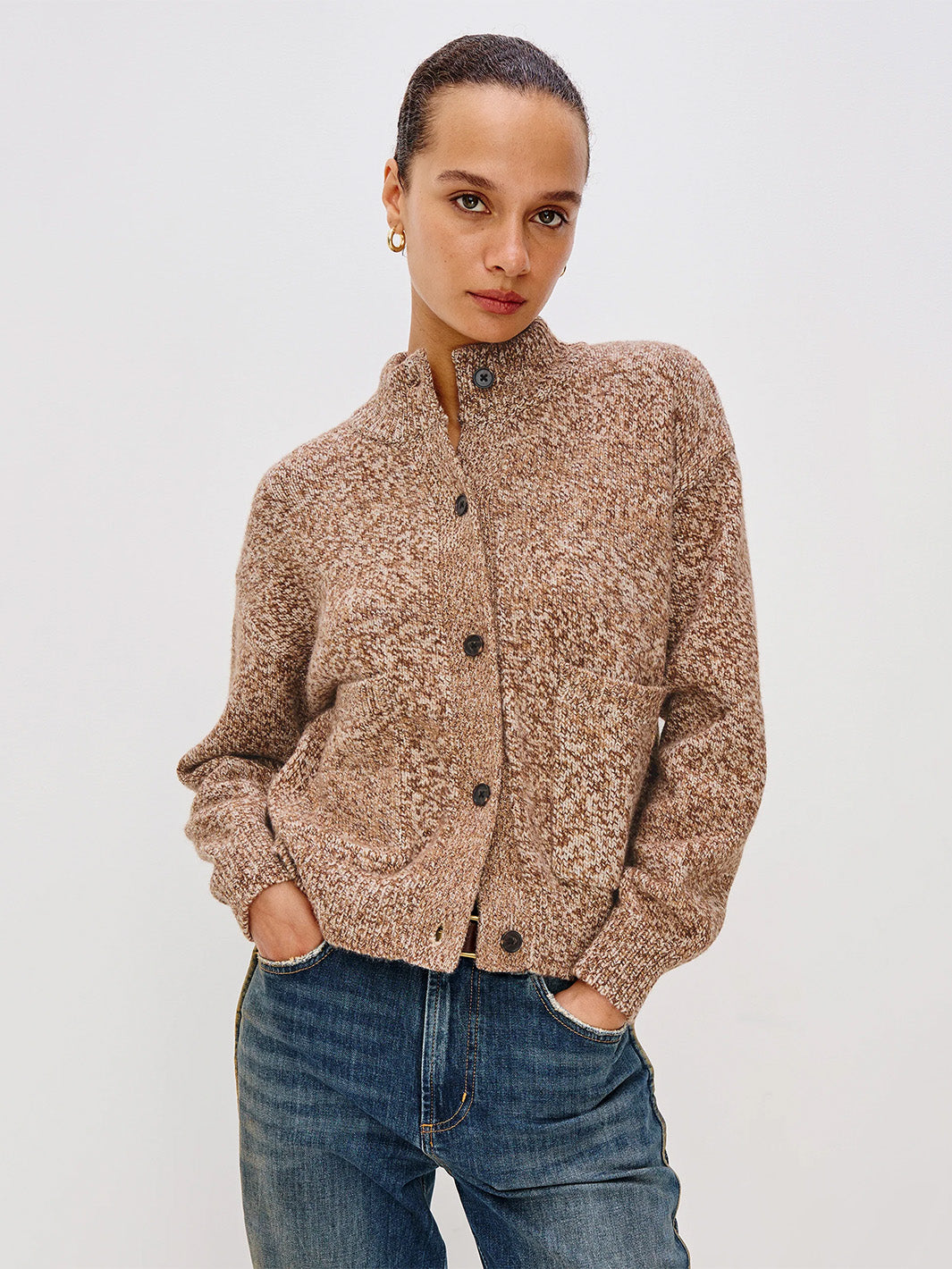 Cozy Dolman-Sleeve Mock-Neck Top in Heather Bruna