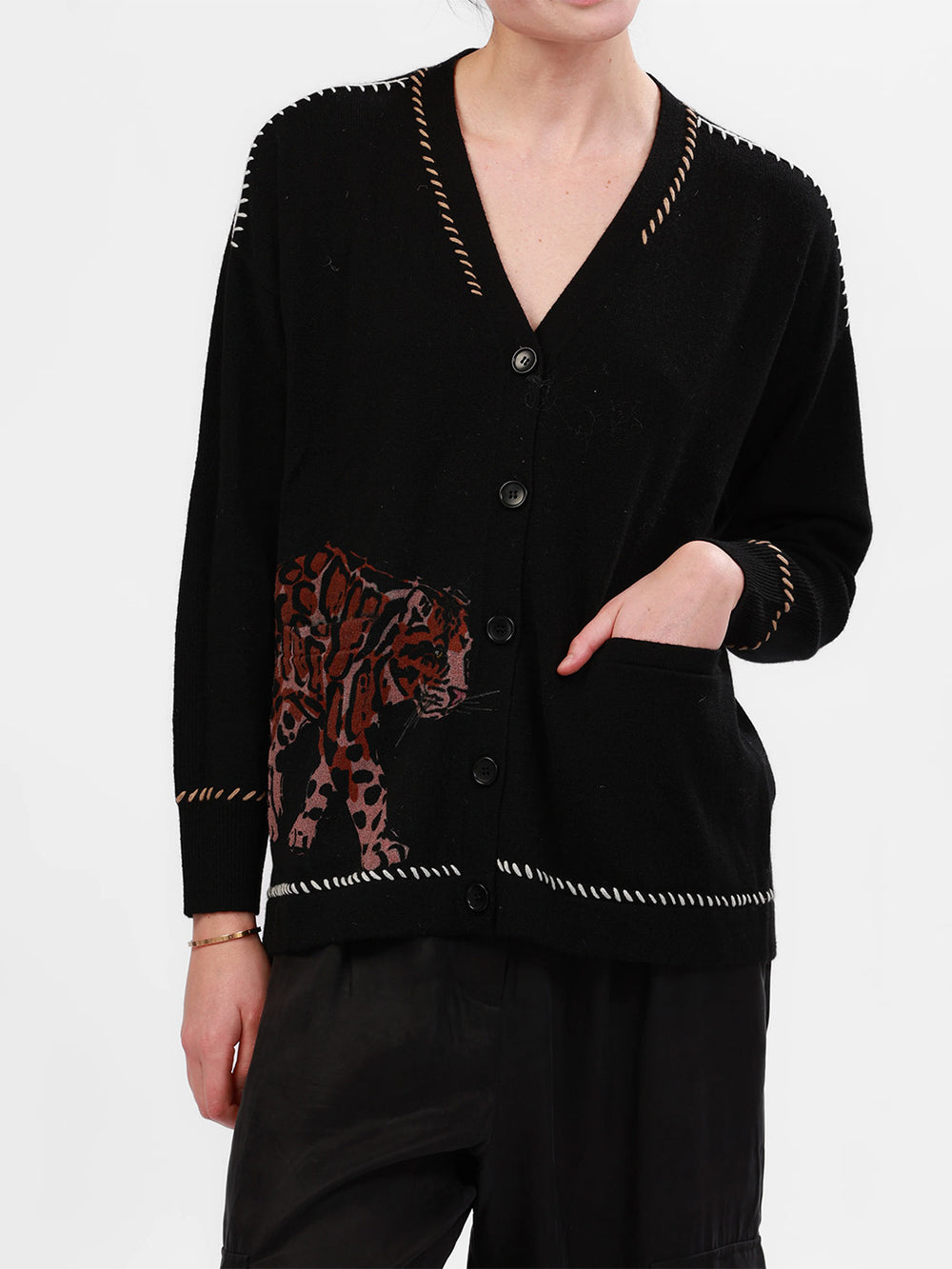 Snow Leopard Cardigan in Black