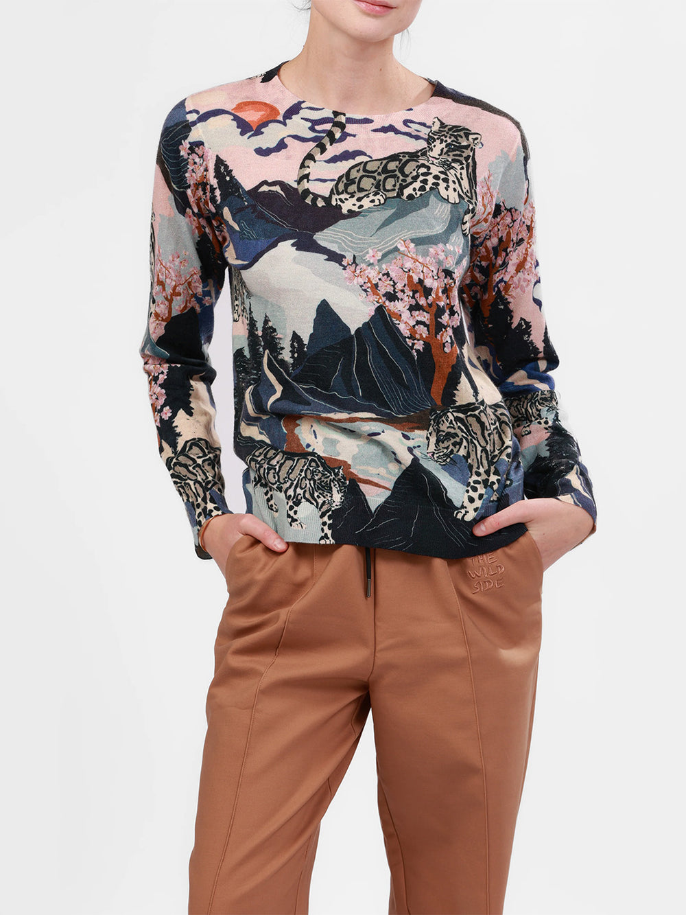 Snow Leopard Cashmere Sweater in Blue