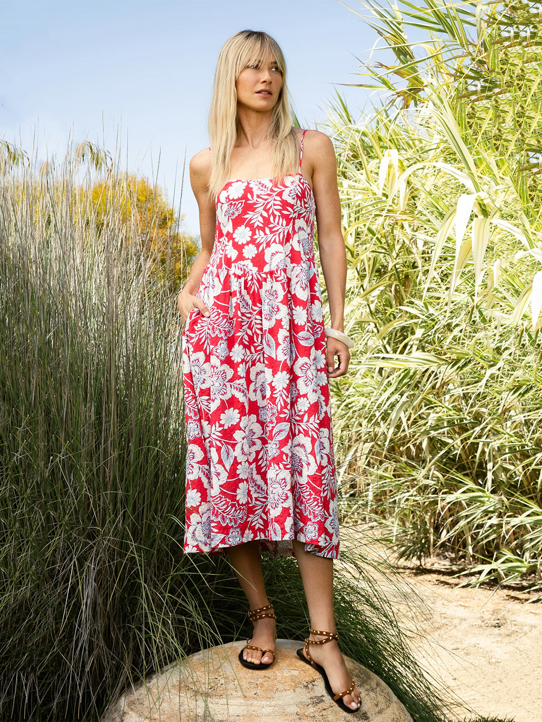 Cotton-Linen Chambray A-Line Dress in Indigo