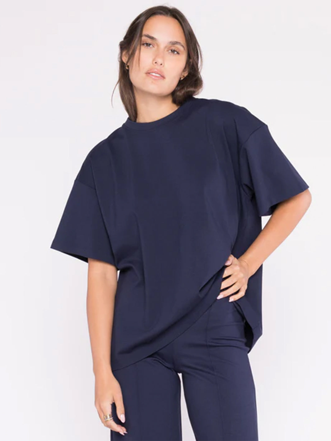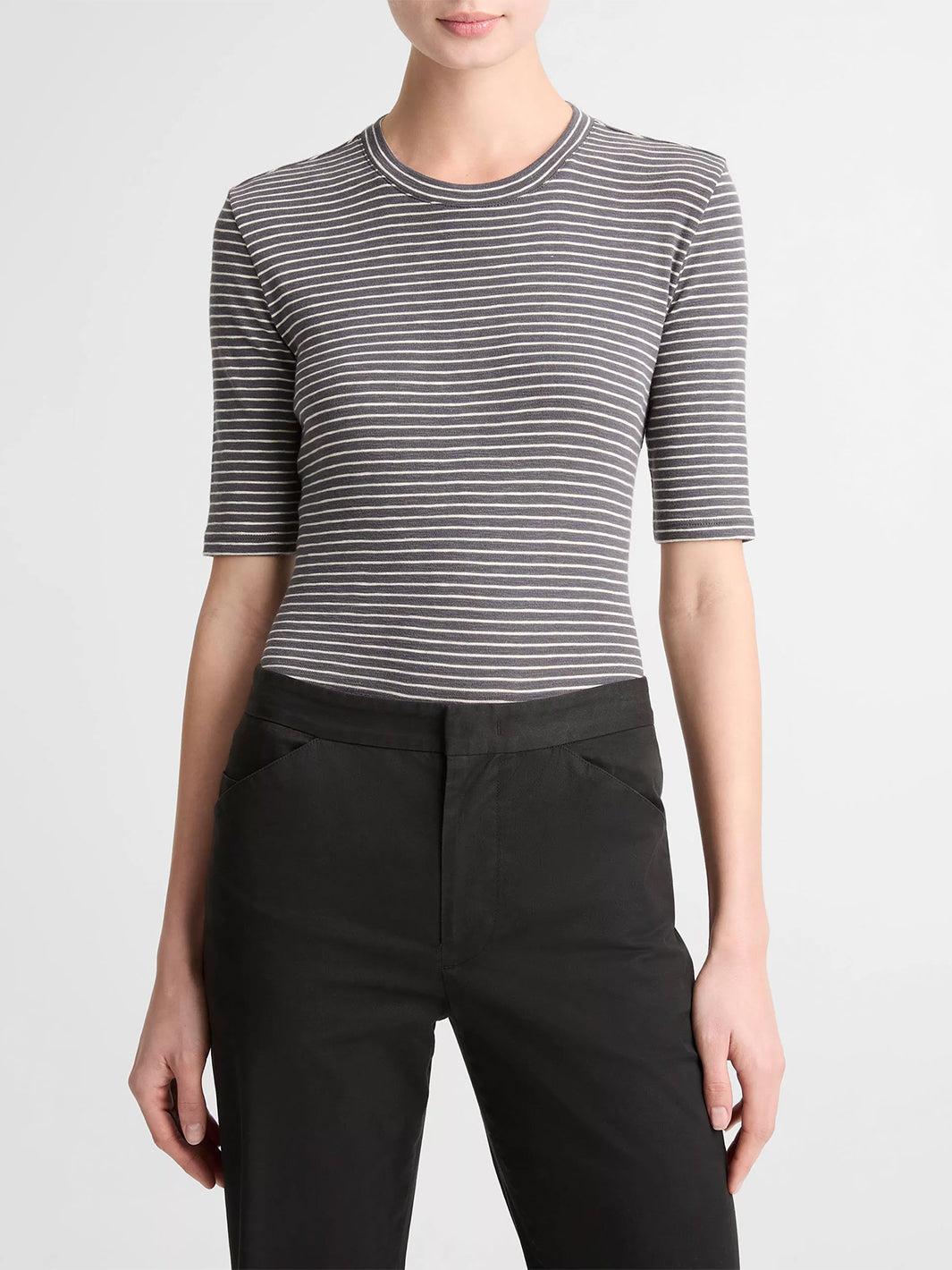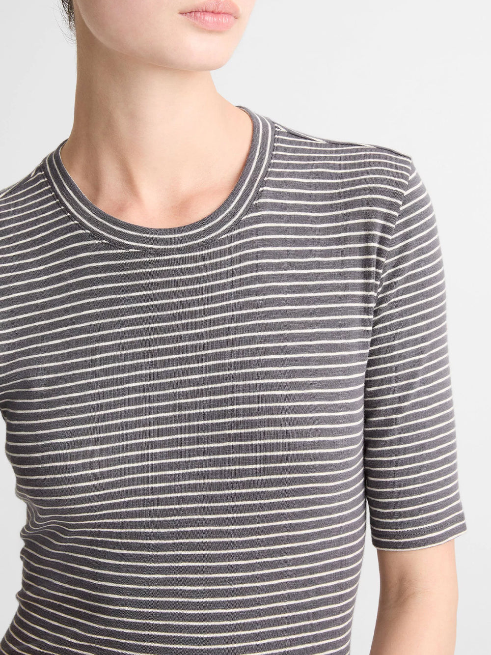 Striped Cotton-Blend Elbow-Sleeve T-Shirt in Oceana Combo