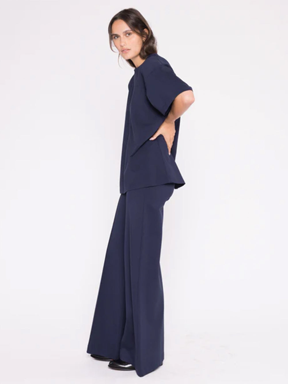 Niki Mid-Rise Pintuck Crop Flare Pant in Dark Poppy