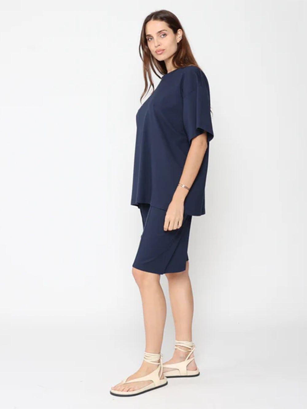 Avery Mid-Rise Italian Stretch-Cotton Short in Coastal Blue