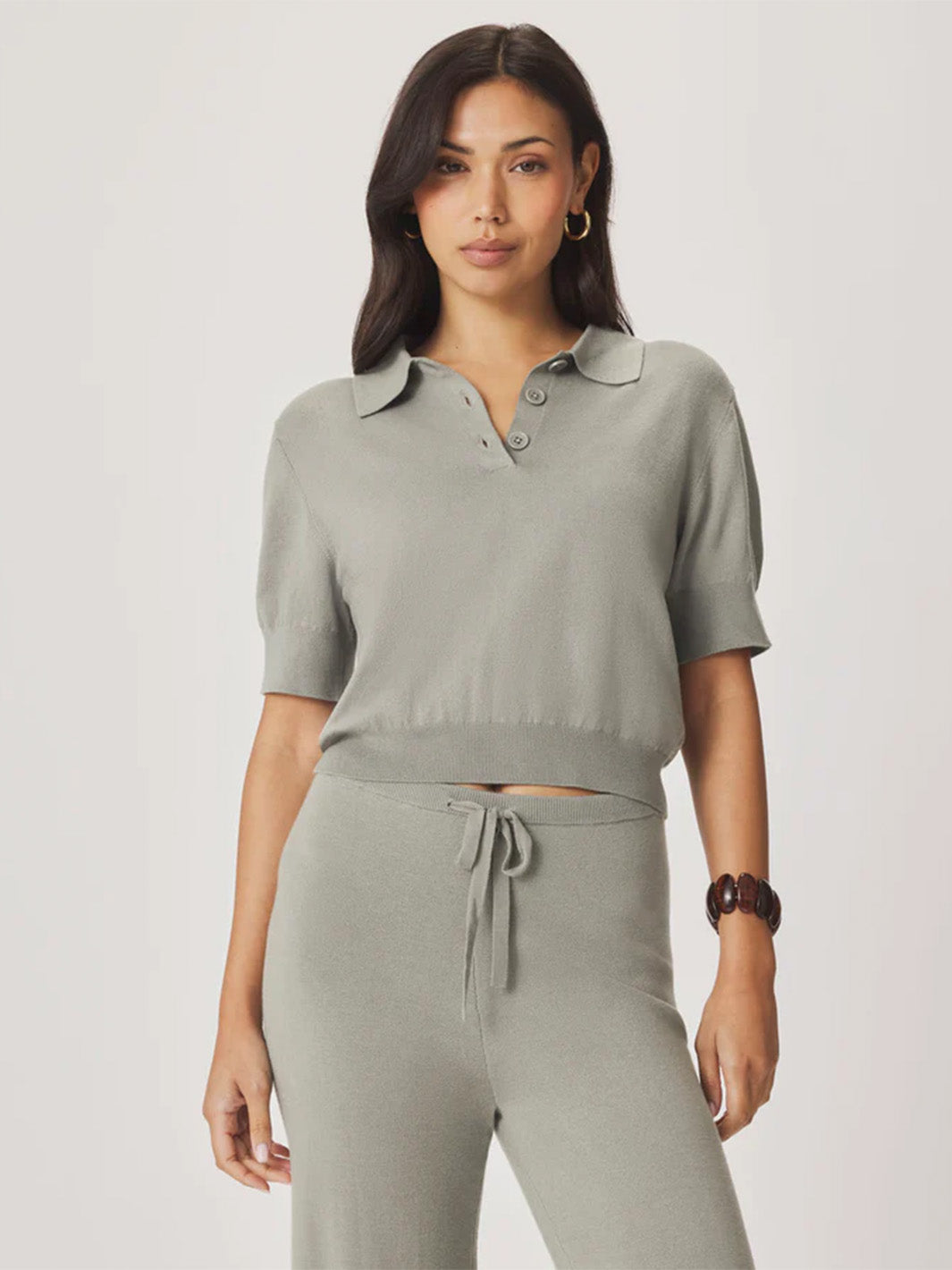 A bit sporty and a little luxe, this short sleeve polo knit is your new essential.