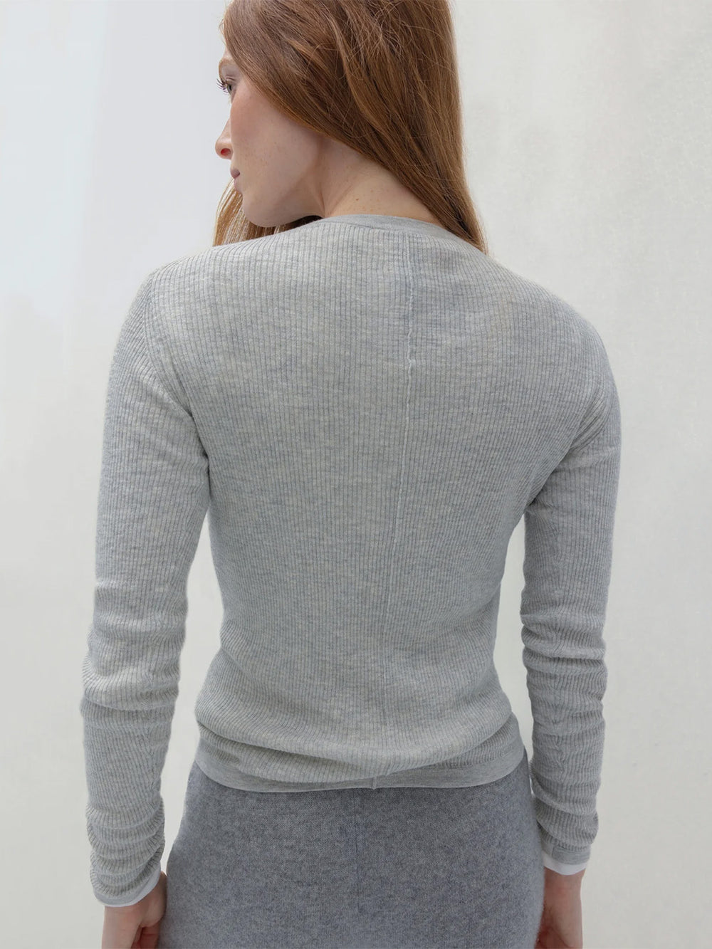 Long-Sleeve Ribbed Tee in Grey