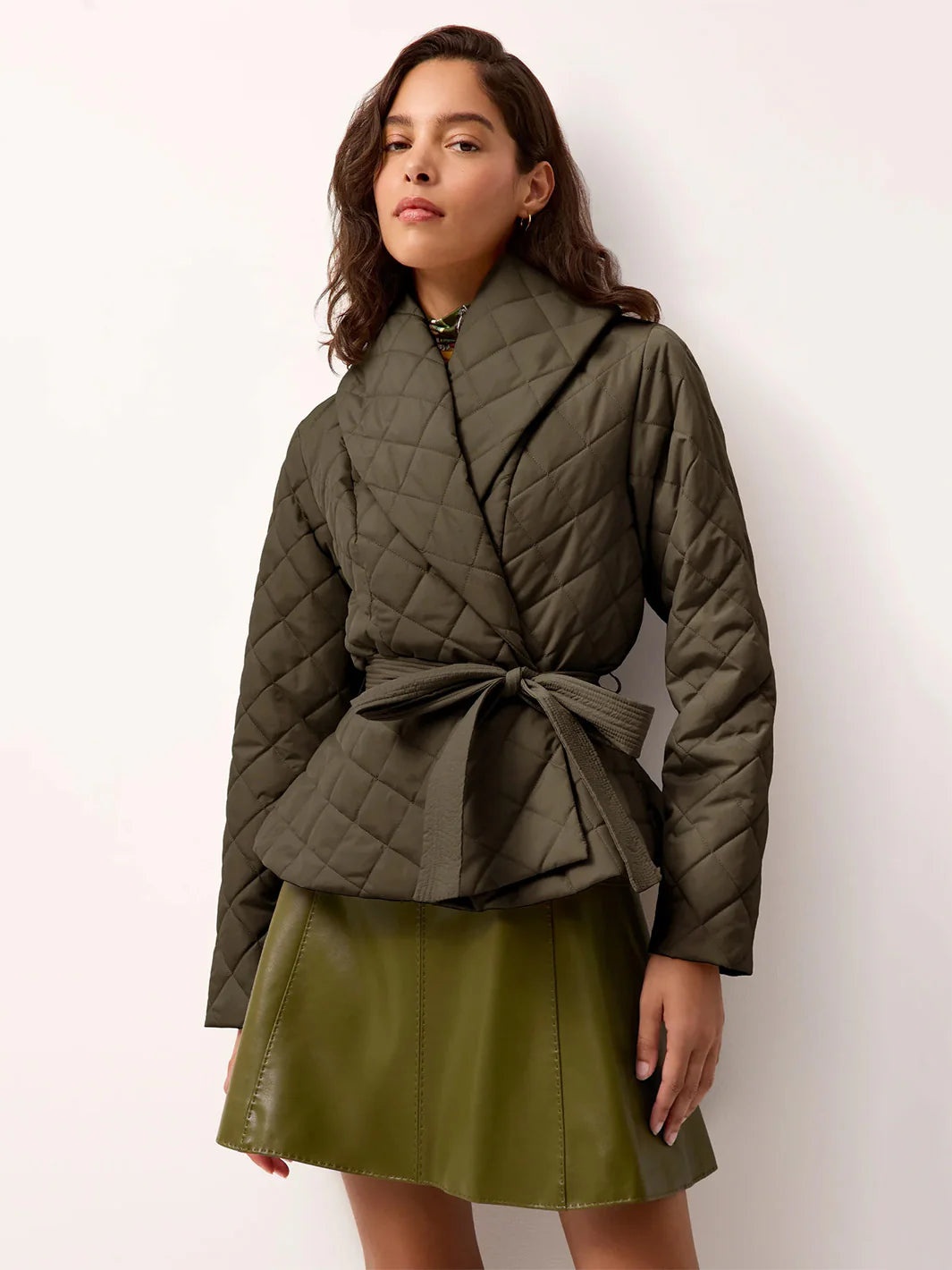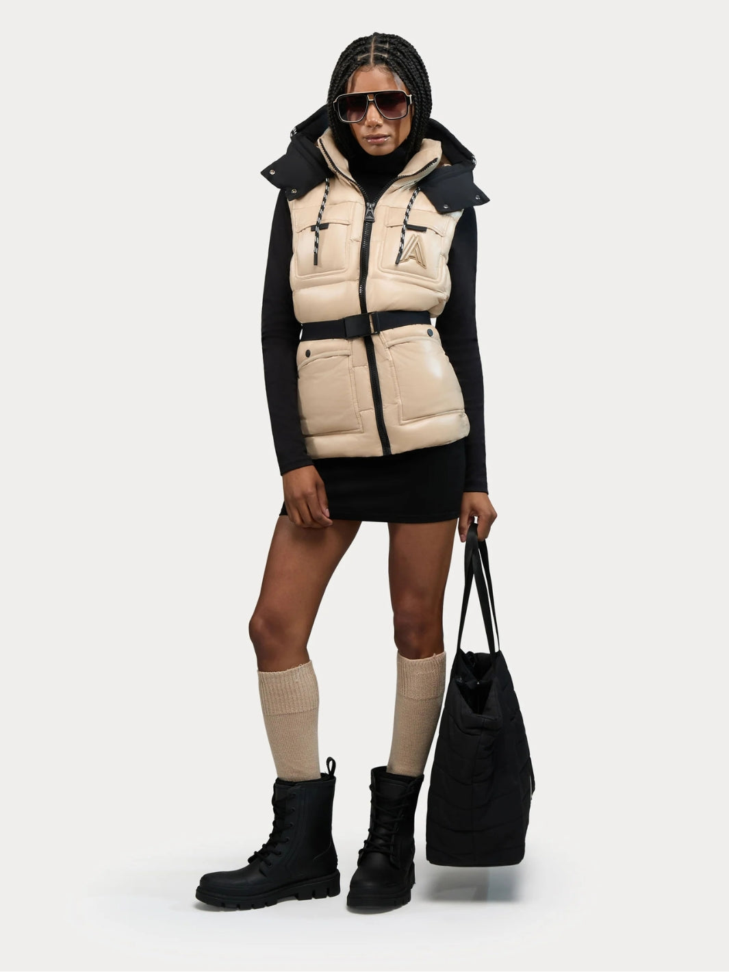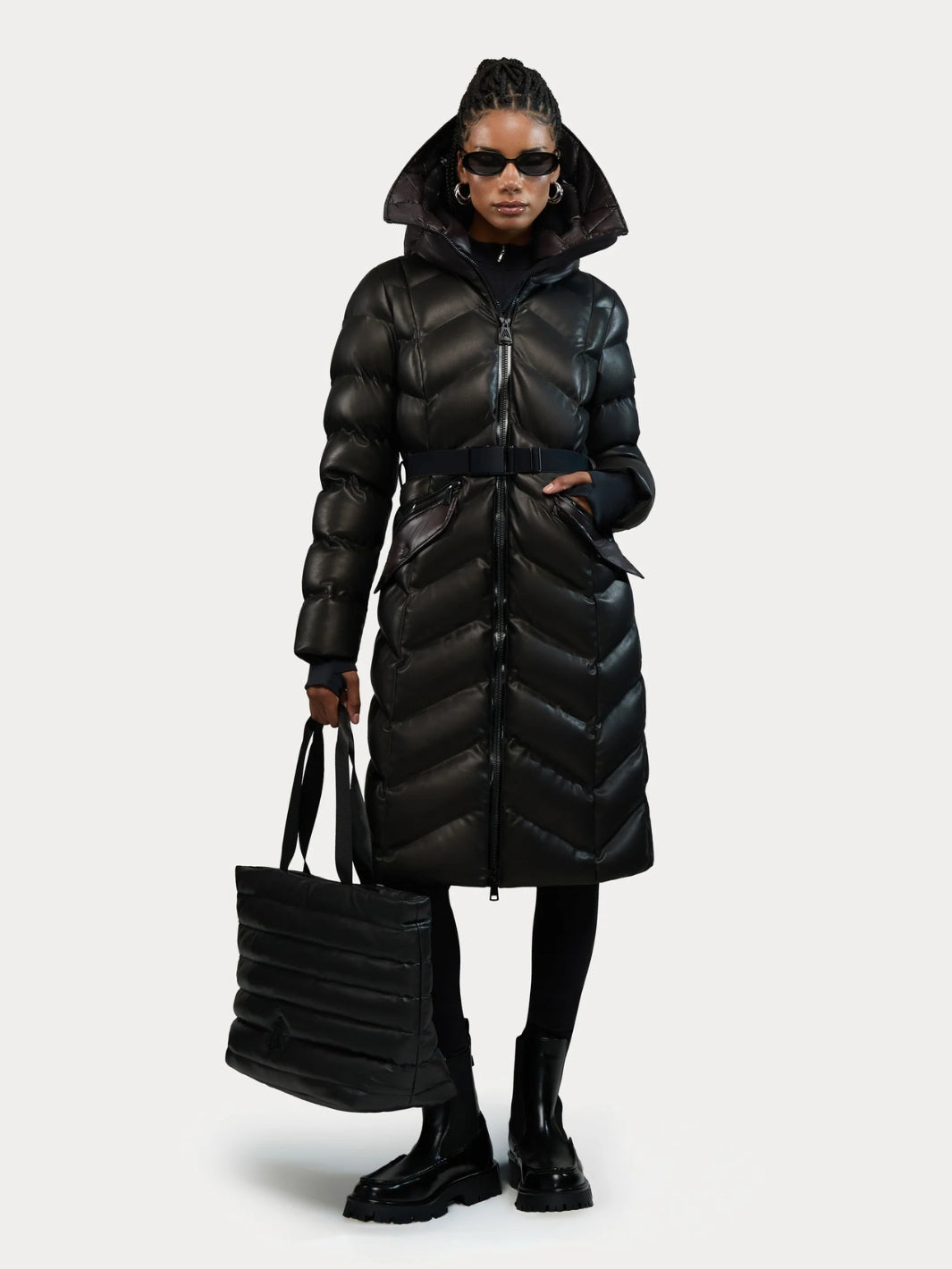 ALPENHAUS Bellevaux-Re Puffer Coat with Adjustable Belt in Black Vegan Leather