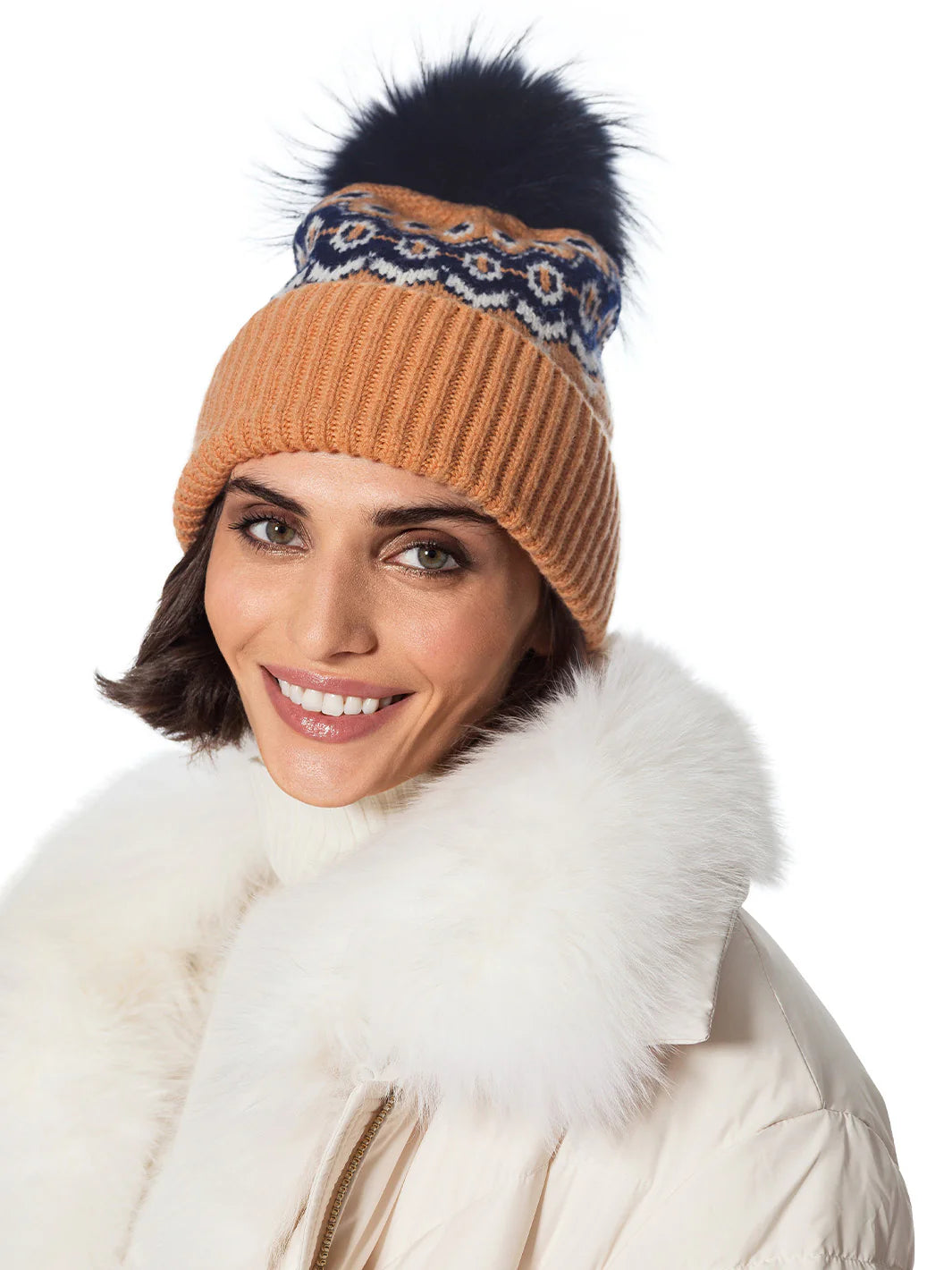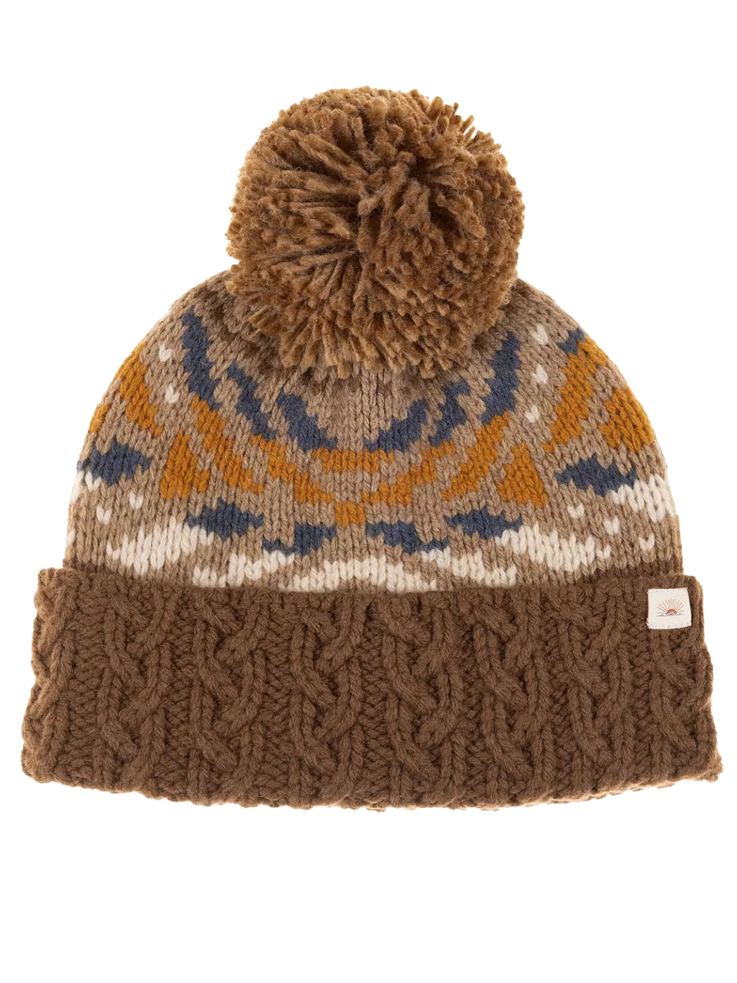 FAHERTY Fair Isle Mountain Beanie in Brown