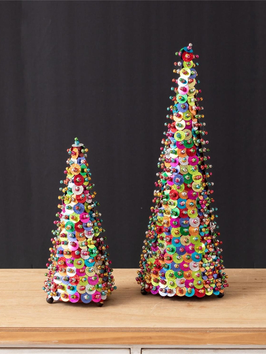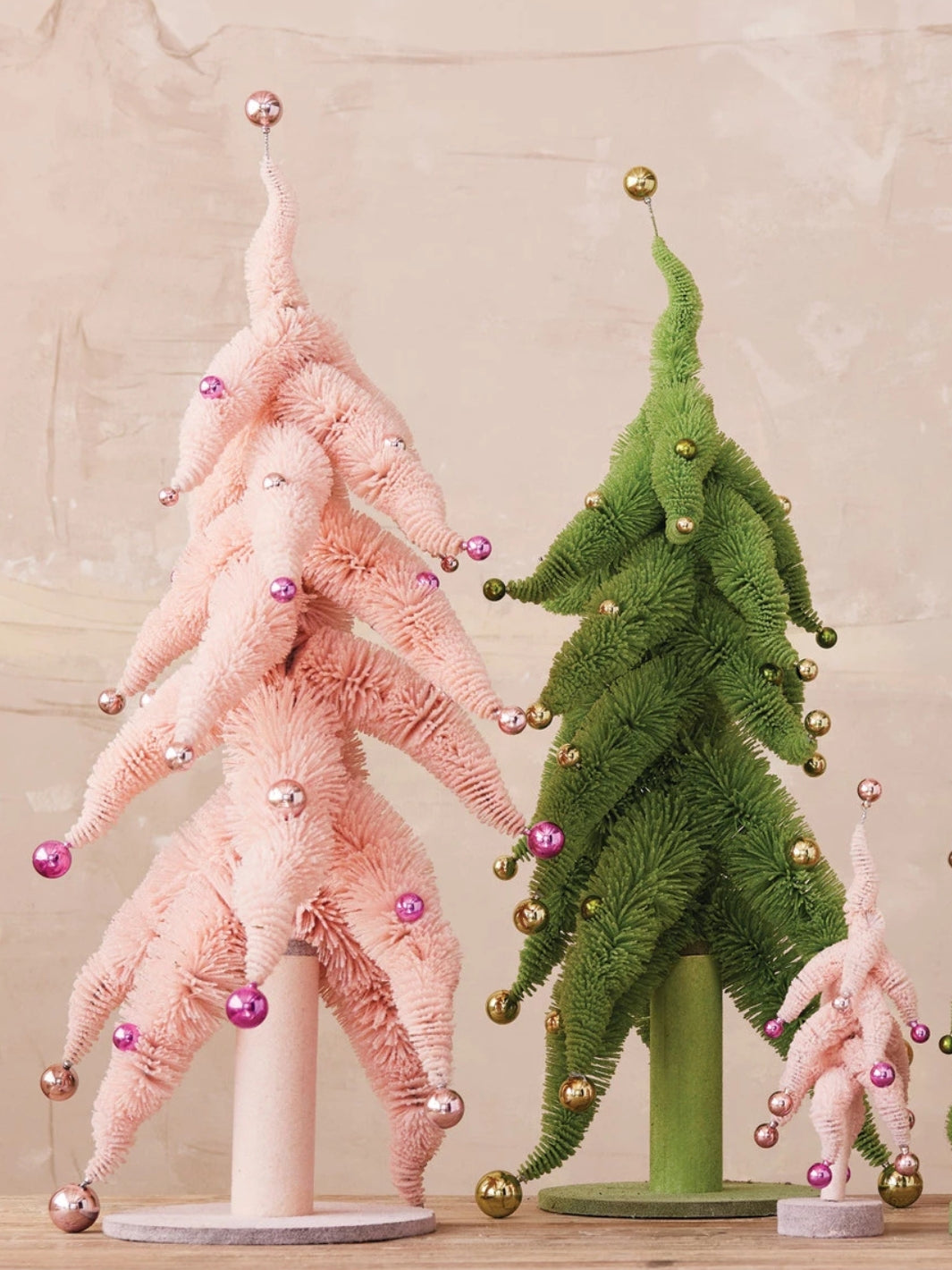 Flocked Plastic Bottle Brush Christmas Trees with Ball Ornaments