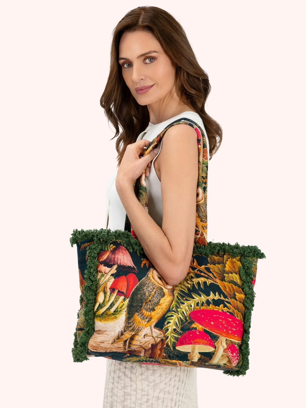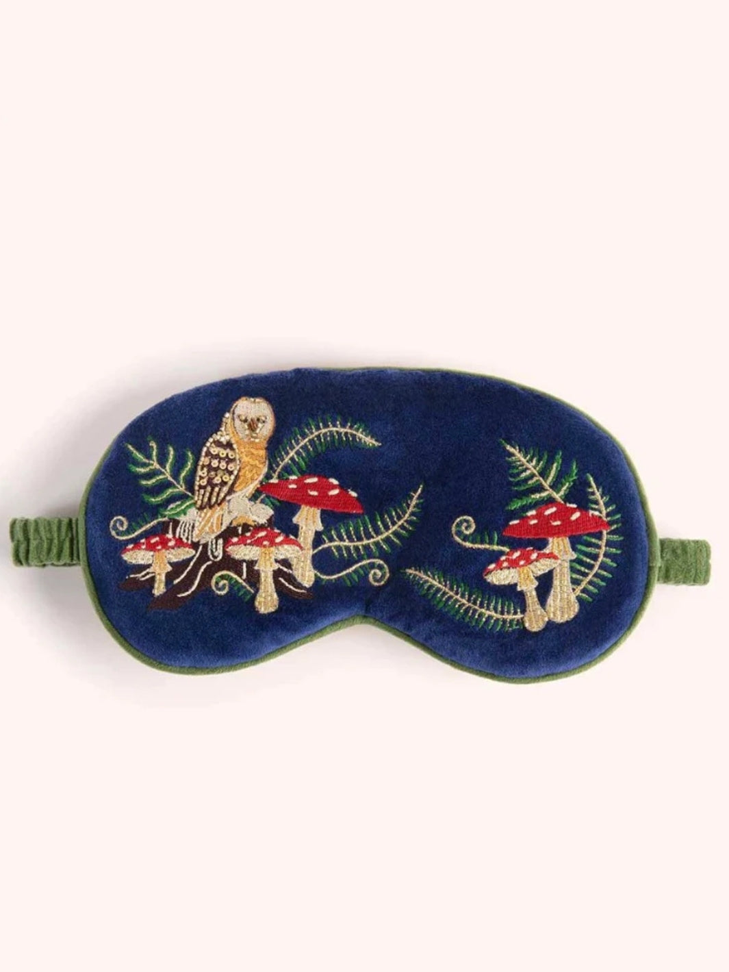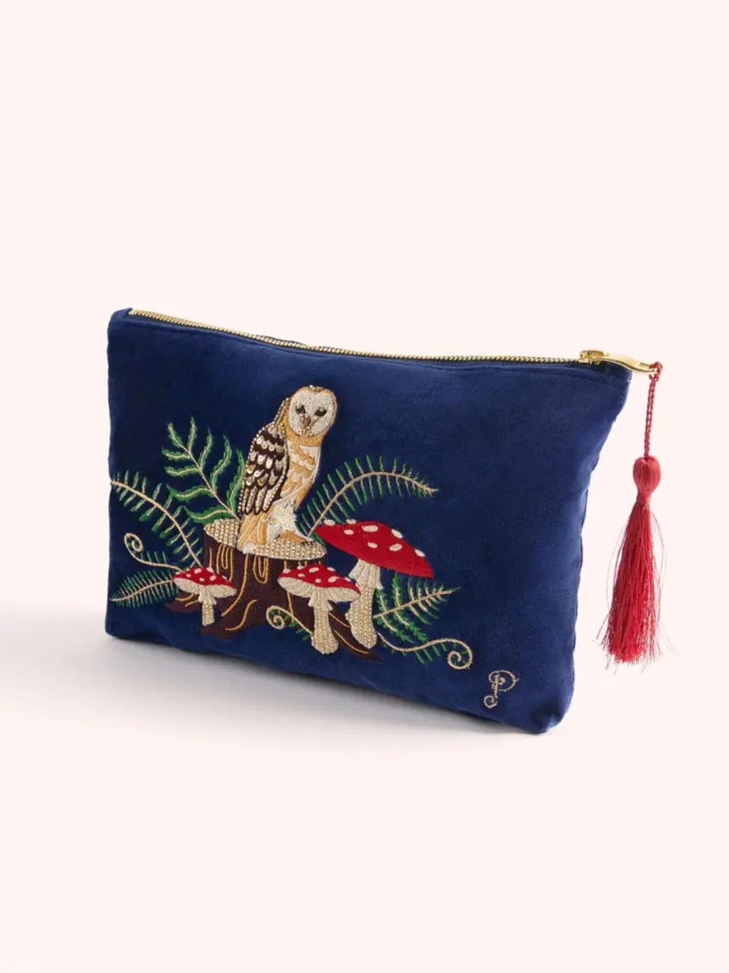 Embroidered Velvet Mini Pouch in Woodland Owl