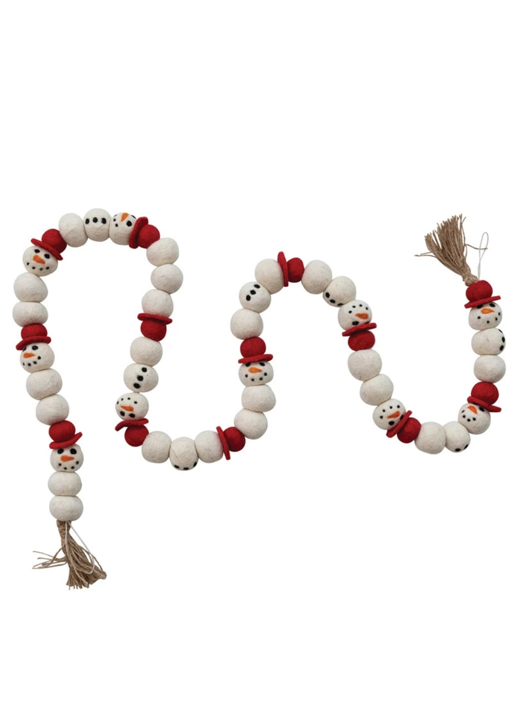 Handmade Wool Felt Snowman Garland with Jute Tassels