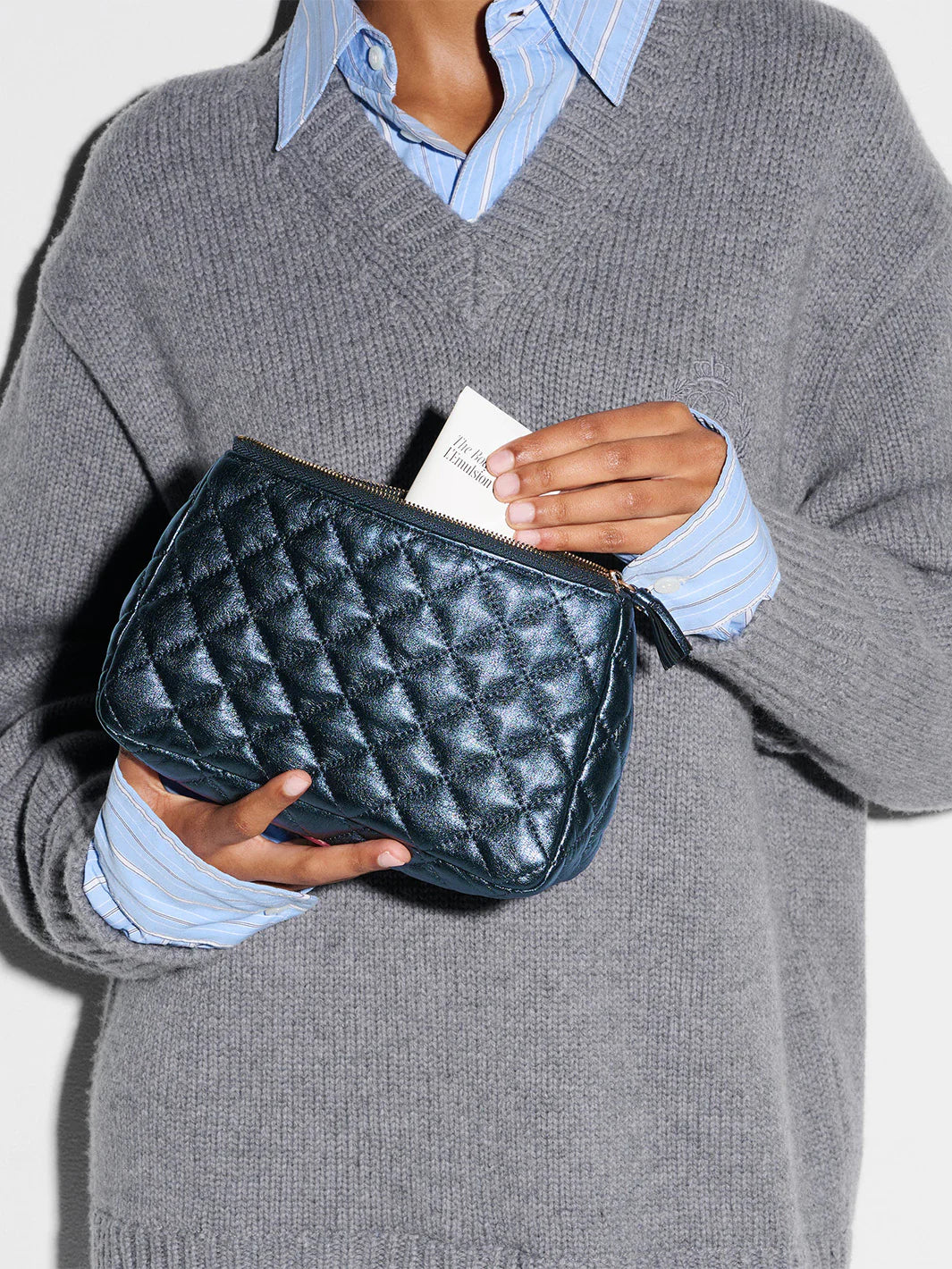Embroidered Velvet Mini Pouch in Cozy Fox