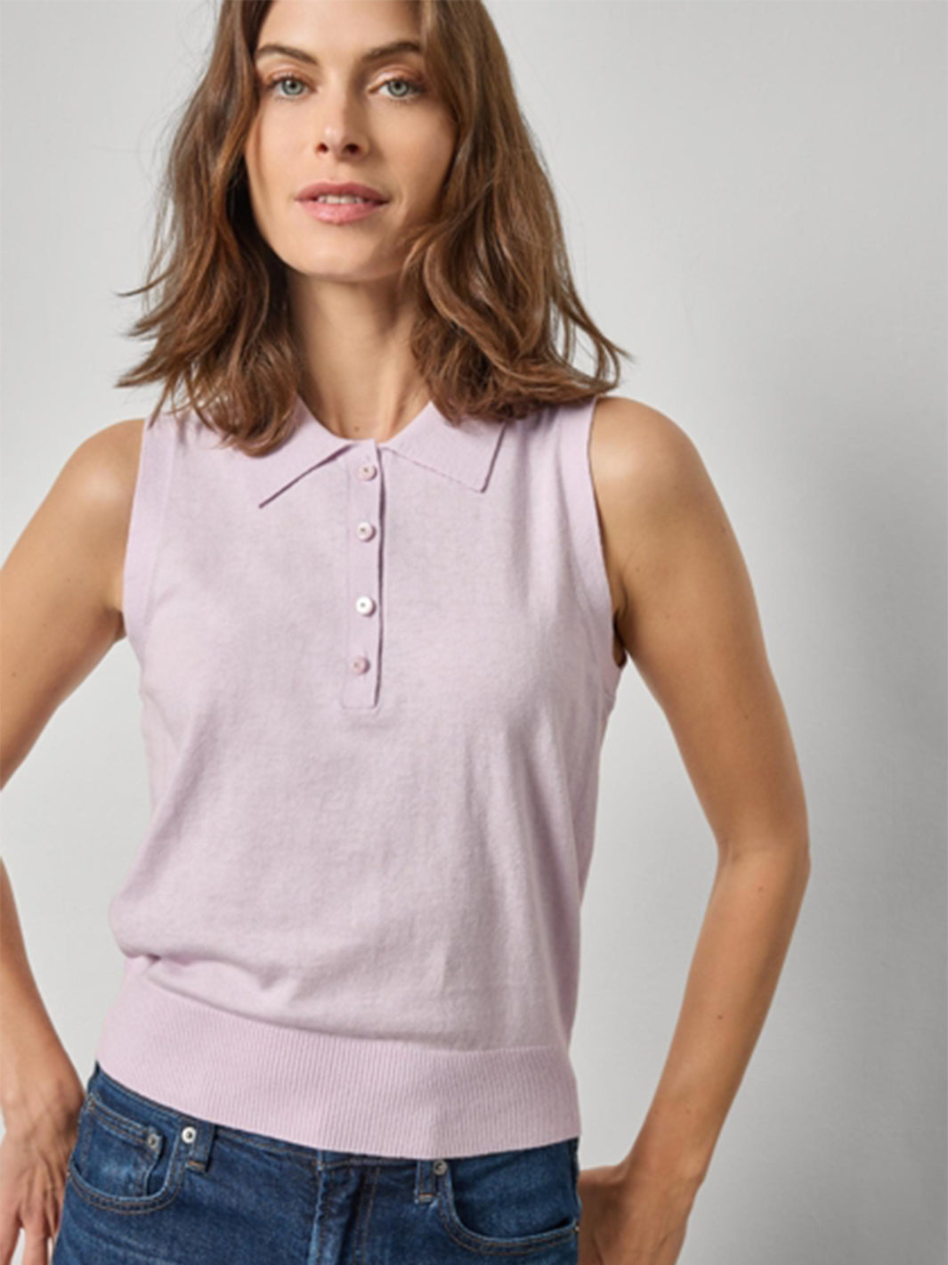 Sleeveless Polo Sweater in Wisteria